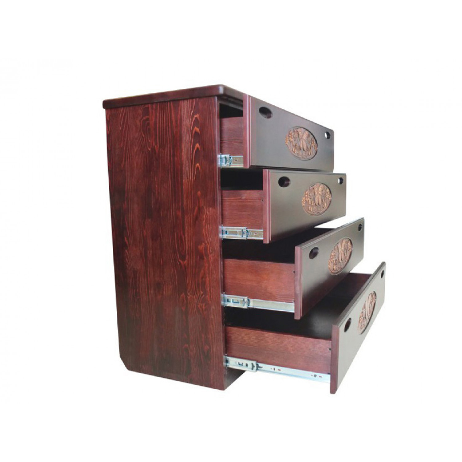Деревянный комод Галатея с резьбой выполнен из массива сосны,в данной модели вы можете самостоятельно указать цвет и материал,выбрав соответствующую опцию.