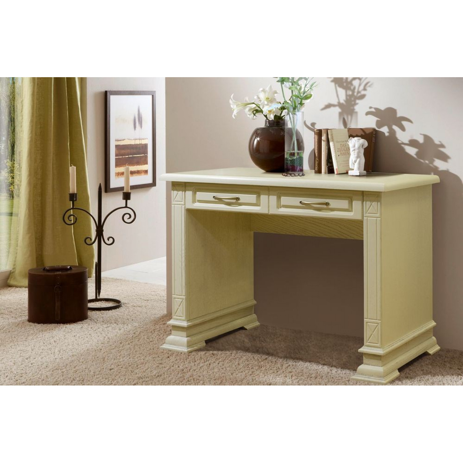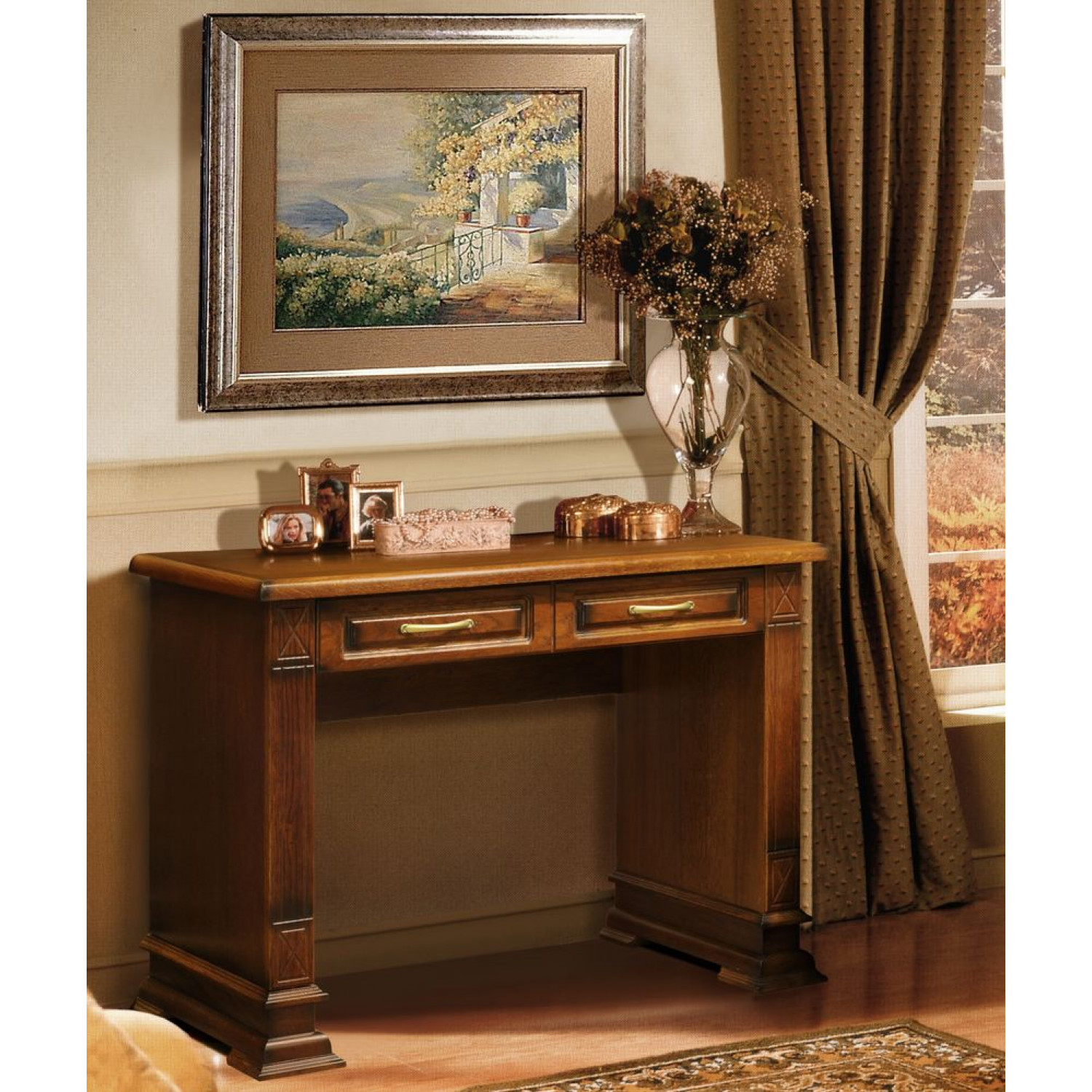 Письменный стол Верди 202 выполнен из массива сосны,в данной модели вы можете самостоятельно указать цвет и выбрать материал,выбрав соответствующую опцию.