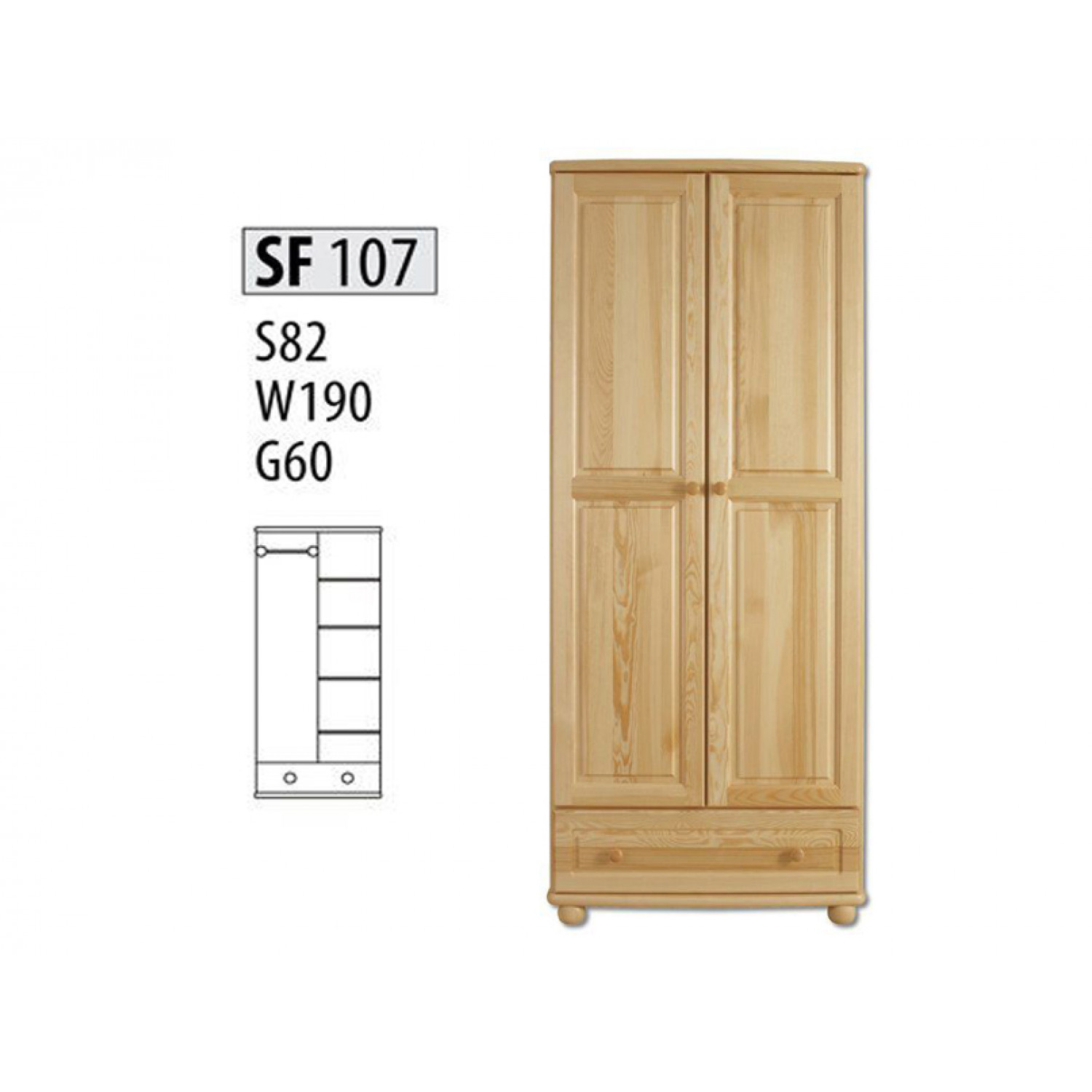 Деревянный шкаф №107 выполнен из массива сосны,в данной модели вы можете самостоятельно указать цвет и материал,выбрав соответствующую опцию.