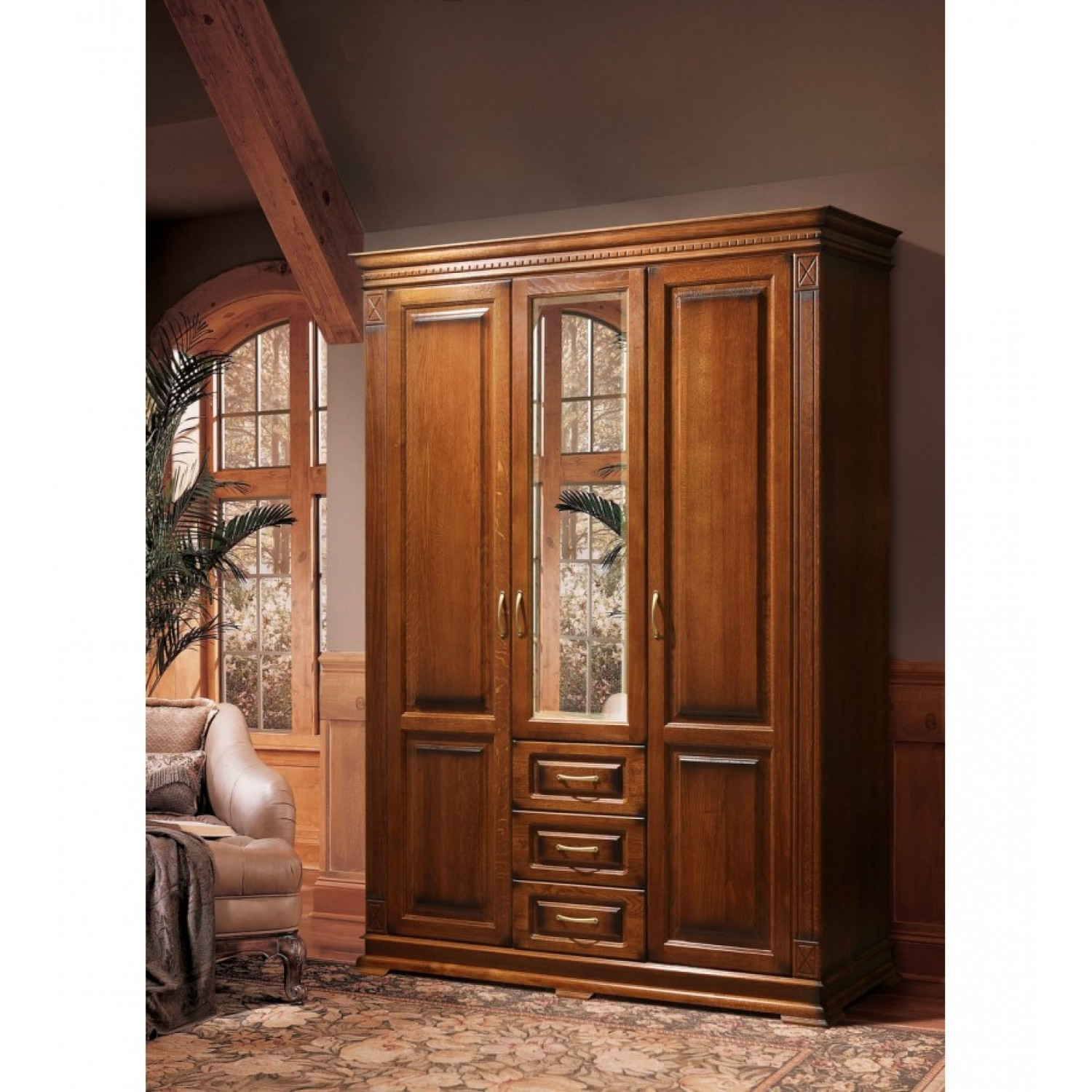 Деревянный шкаф Верди 320 модель 2 выполнен из массива сосны,в данной модели вы можете самостоятельно указать цвет и материал,выбрав соответствующую опцию.