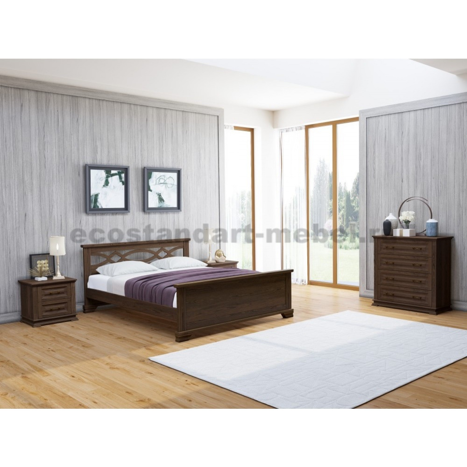 Деревянный спальный гарнитур Лира-3 выполнен из массива сосны,в данной модели вы можете самостоятельно изменить размер и укомплектовать кровать ящиками,подъемным механизмом,ортопедическим основанием и матрасом,а так же указать цвет,выбрав соответствующую опцию.