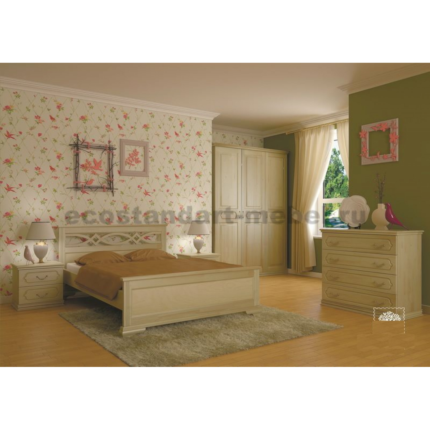 Деревянный спальный гарнитур Лира выполнен из массива сосны,в данной модели вы можете самостоятельно изменить размер и укомплектовать кровать ящиками,подъемным механизмом,ортопедическим основанием и матрасом,а так же указать цвет,выбрав соответствующую опцию.