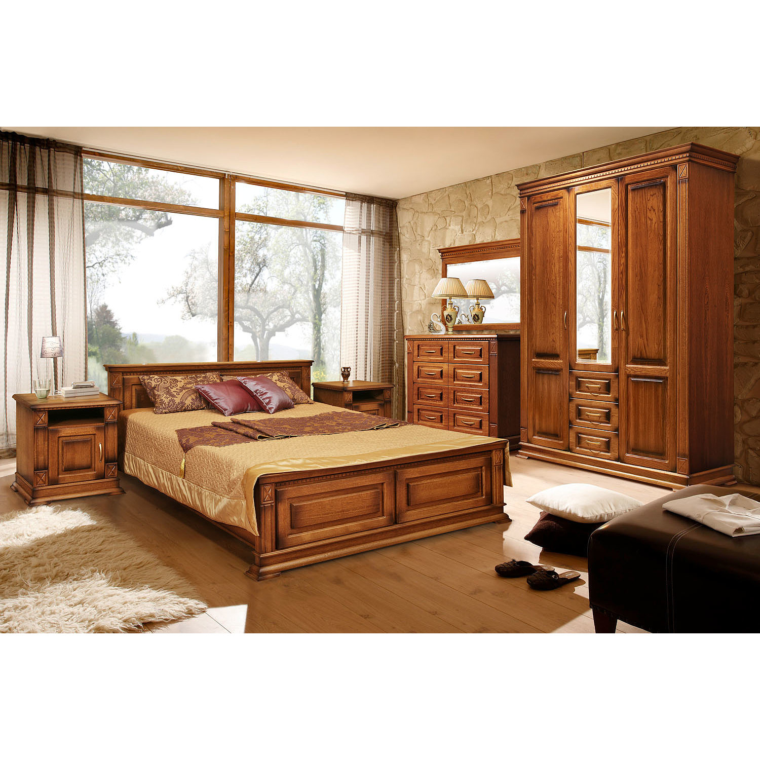 Спальный гарнитур Верди 101 выполнен из массива сосны,в данной модели вы можете самостоятельно изменить размер и укомплектовать кровать ящиками,подъемным механизмом,ортопедическим основанием и матрасом,а так же указать цвет,выбрав соответствующую опцию.